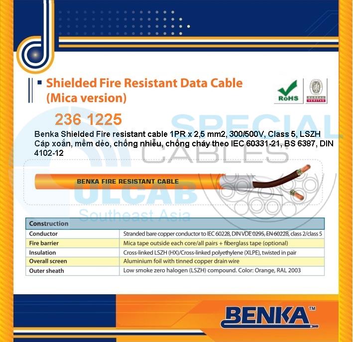 “236 1225” Cáp Chống Cháy Benka 1PR x 2.5 mm2 Cu/MICA/OSCR/LSZH, Orange, 500m | Cáp xoắn – chống nhiễu – chống cháy – Chính Hãng – Giá Tốt Nhất