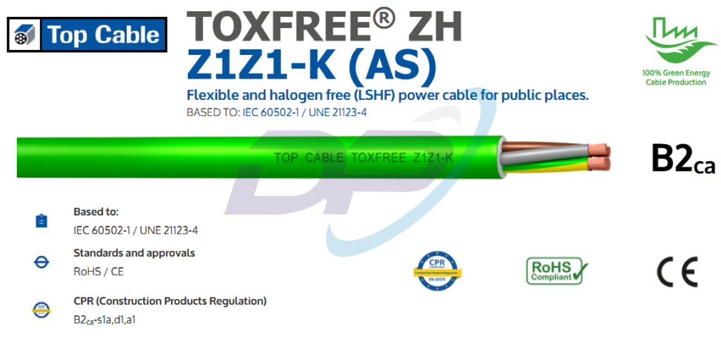 Toxfree® ZH Z1Z1-K (AS) là cáp an toàn LSHF. Trong trường hợp hỏa hoạn, nó không thải ra khí độc, cũng không thải ra khí ăn mòn, tránh mọi thiệt hại có thể xảy ra đối với con người hoặc thiết bị điện tử. Vì những lý do này, nó rất được khuyến khích sử dụng ở những nơi công cộng như: bệnh viện, trường học, bảo tàng, sân bay, bến xe buýt, trung tâm mua sắm, văn phòng, phòng thí nghiệm, v.v.