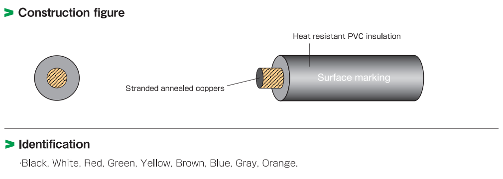 0.75mm2~100mm2 wires conform to Electrical Appliance and Material Safety Law.