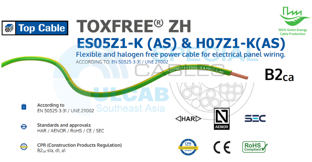 Cáp Điện Lõi Đơn TOP CABLE TOXFREE ZH ES05Z1-K/ H05Z1-K & H07Z1-K (AS) | Chính Hãng – Halogen Free – Giá Tốt Nhất