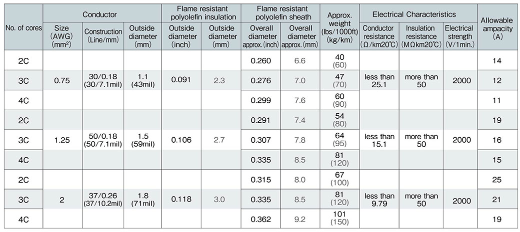 •The allowable ampacity of this catalog is a value at one in the air construction and the ambient temperature 30°C.