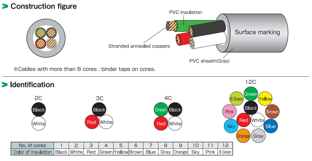 | Applicable standard | LawDepartmental order to determine a technical standard of the electrical equipment JIS C3312(0,75~14mm²) |