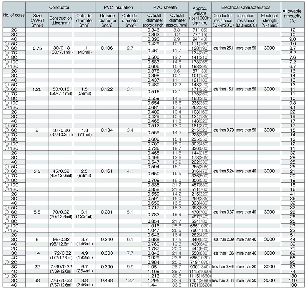•The allowable ampacity of this catalog is a value at one in the air construction and the ambient temperature 30°C.