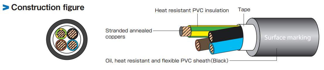 It suits Electrical Appliance and Material Safety Law.(2~7 cores).