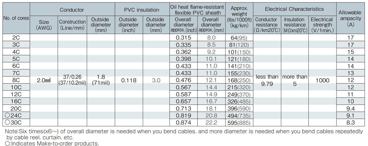 AC 300V or less of the environmental type cable as machine tools,construction machinery, applications under harsh conditions, such as a robot power circuit.