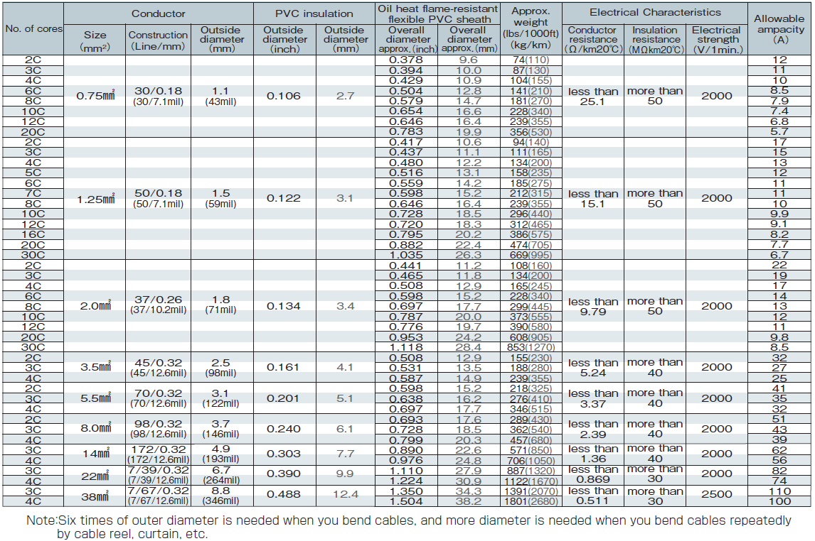 •The allowable ampacity of this catalog is a value at one in the air construction and the ambient temperature 30°C.