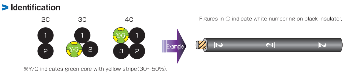 ※3, 4 core has the [Y/G] earth cable of an equal size.
