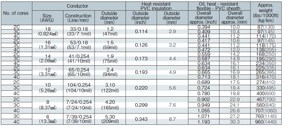 Oil, heat resistant and Flexible PVC sheath material is used.