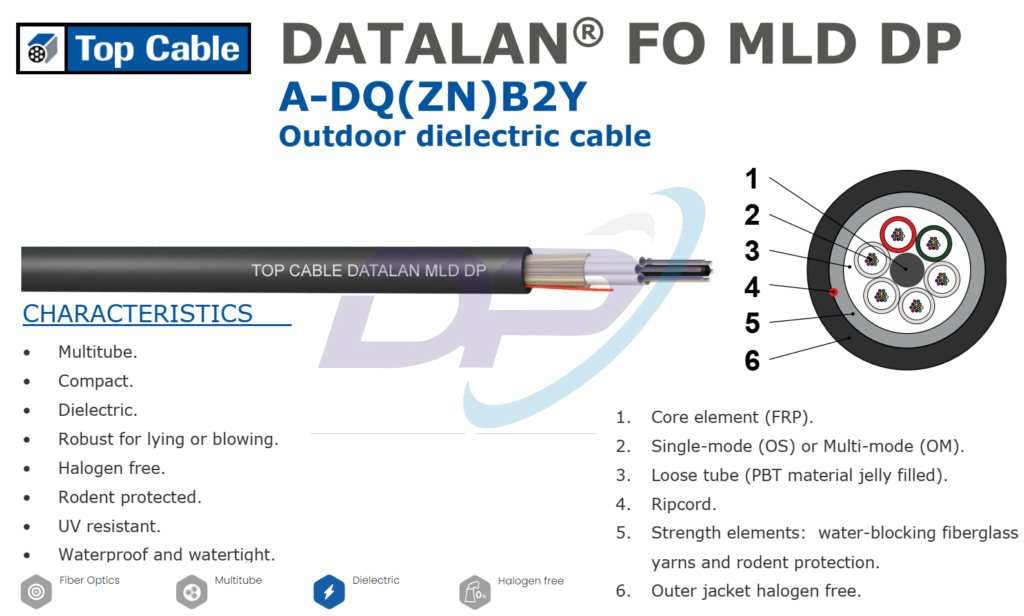 Cáp Quang TOP CABLE DATALAN® MLD DP A-DQ(ZN)B2Y | Chính Hãng – Giá Tốt Nhất