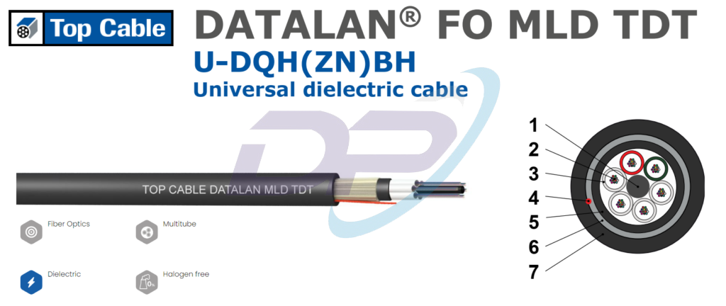 DATALAN ® MLD TDT U-DQH(ZN)BH là cáp quang phổ thông thích hợp cho lắp đặt chôn trực tiếp, lắp đặt trong phòng và lắp đặt trong ống dẫn.