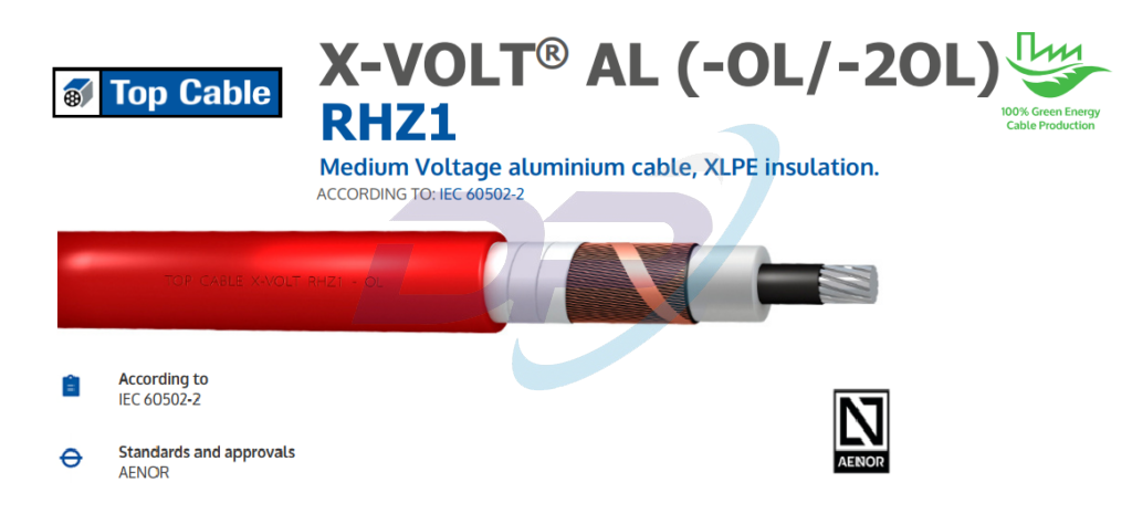 Cáp đồng hoặc nhôm trung thế X-VOLT RHZ1 , cách điện XLPE. Tùy chọn cấu hình: Cu hoặc Al (OL/2OL). Không chứa halogen, không lan truyền ngọn lửa, không lan truyền lửa .