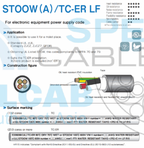 Ứng dụng AC 300V hoặc ít hơn của loại cáp môi trường như máy công cụ, máy móc xây dựng, ứng dụng trong điều kiện khắc nghiệt, chẳng hạn như mạch điện rô bốt. Dầu, tính linh hoạt khi sử dụng. Điện áp định mức: 300V. Nhiệt độ: 60°C.