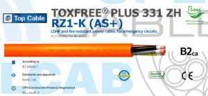 TOXFREE Plus 331 ZH RZ1-K (AS+) is a fire resistant cable, specially designed to ensure the power supply to emergency circuits in the event of fire. During a fire you need critical circuits to work for life safety (signaling lights, fume extractors, acustic alarms, water pumps, etc) and a secure plant shutdown. For this reason, its use is highly recommended in public places such as: hospitals, tunnels, offices, production plants, laboratories, hotels, etc.