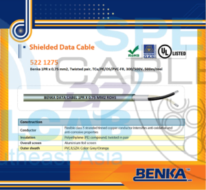 “522 1275” Cáp Tín Hiệu Benka 1Pair 0.75mm2 TCU/PE/OSCR/PVC, Grey, 500m | Chính Hãng – Chống Nhiễu – Chống Bén Cháy