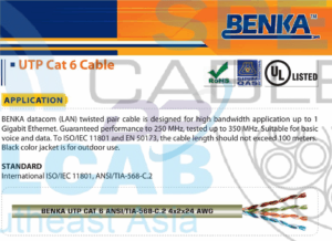 Cáp Mạng BENKA ( 313 4224C6 ) Benka U/UTP CAT.6 Cable 4×2×24 AWG, 305m/box | Chính Hãng – Giá Tốt Nhất