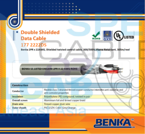 “177 1222DS” Cáp RS485 Benka 1Pair 22AWG TCU/PE/OSCR/PVC, Grey, 500m | Chính Hãng – Chống Nhiễu – Chống Bén Cháy