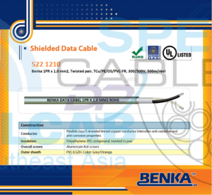 “522 1210” Cáp Tín Hiệu Benka 1Pair 1.0mm2 TCU/PE/OSCR/PVC, Grey, 500m | Chính Hãng – Chống Nhiễu – Chống Bén Cháy
