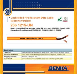 “236 1215-ER” Cáp Chống Cháy Benka 1PR x 1.5 mm2 Cu/Silicon/OSCR/LSZH, Orange, 500m | Cáp xoắn – chống nhiễu – chống cháy – Chính Hãng – Giá Tốt Nhất