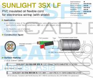 Dây cáp điện và điều khiển tín hiệu TAIYO SUNLIGHT 3DX LF 300V 60°C được...