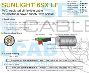Dây cáp điện và điều khiển tín hiệu TAIYO SUNLIGHT 6SX LF 600V 60°C; được...